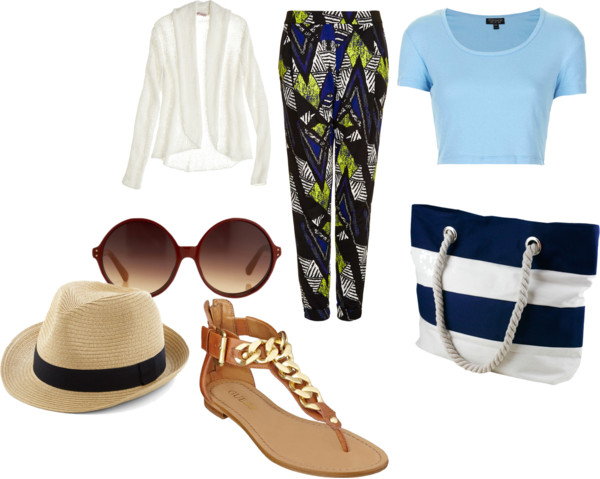 Τα θαλασσινά ταξίδια στην Ελλάδα με το air condition σε πολικές θερμοκρασίες απαιτούν οπωσδήποτε μακρύ παντελόνι και ένα T-shirt. Και ένα φουλάρι ή μία βαμβακερή ζακέτα μη σου πω. Πρόσεξε: ένα παντελόνι. Ένα. Και ένα T-shirt, που θα το ξαναφορέσεις. Προτείνω την παντελόνα με τα γεωμετρικά σχέδια, που θα την ξαναφορέσεις ένα βράδυ για να βγεις. Και θα την ξαναφορέσεις στο γυρισμό. Πάρε τα απαραίτητα στην τσάντα θαλάσσης, που ούτως η άλλως είναι μεγάλη και δεν χωράει σε βαλίτσα. Μην ξεχάσεις το ψάθινο καπέλο σου και τα γυαλιά ηλίου. Και δερμάτινο σανδάλι με χρυσές λεπτομέρειες για να ολοκληρώσεις την εικόνα, το οποίο είναι και για βραδυνή έξοδο. All on board! Ay ay captain!