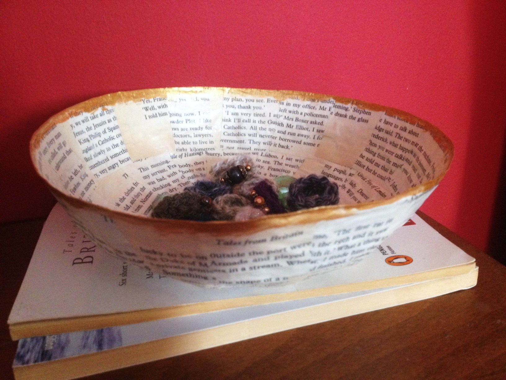 Χρηστικό και όμορφο σαν διακοσμητικό, αυτό το μπόλ απο τις σελίδες ενός παλιού βιβλίου θα μας προκαλέι να το διαβάσουμε και να το θαυμάσουμε! Ας το τοποθετήσουμε στη θέση που του αξίζει! Καλή επιτυχία! S.