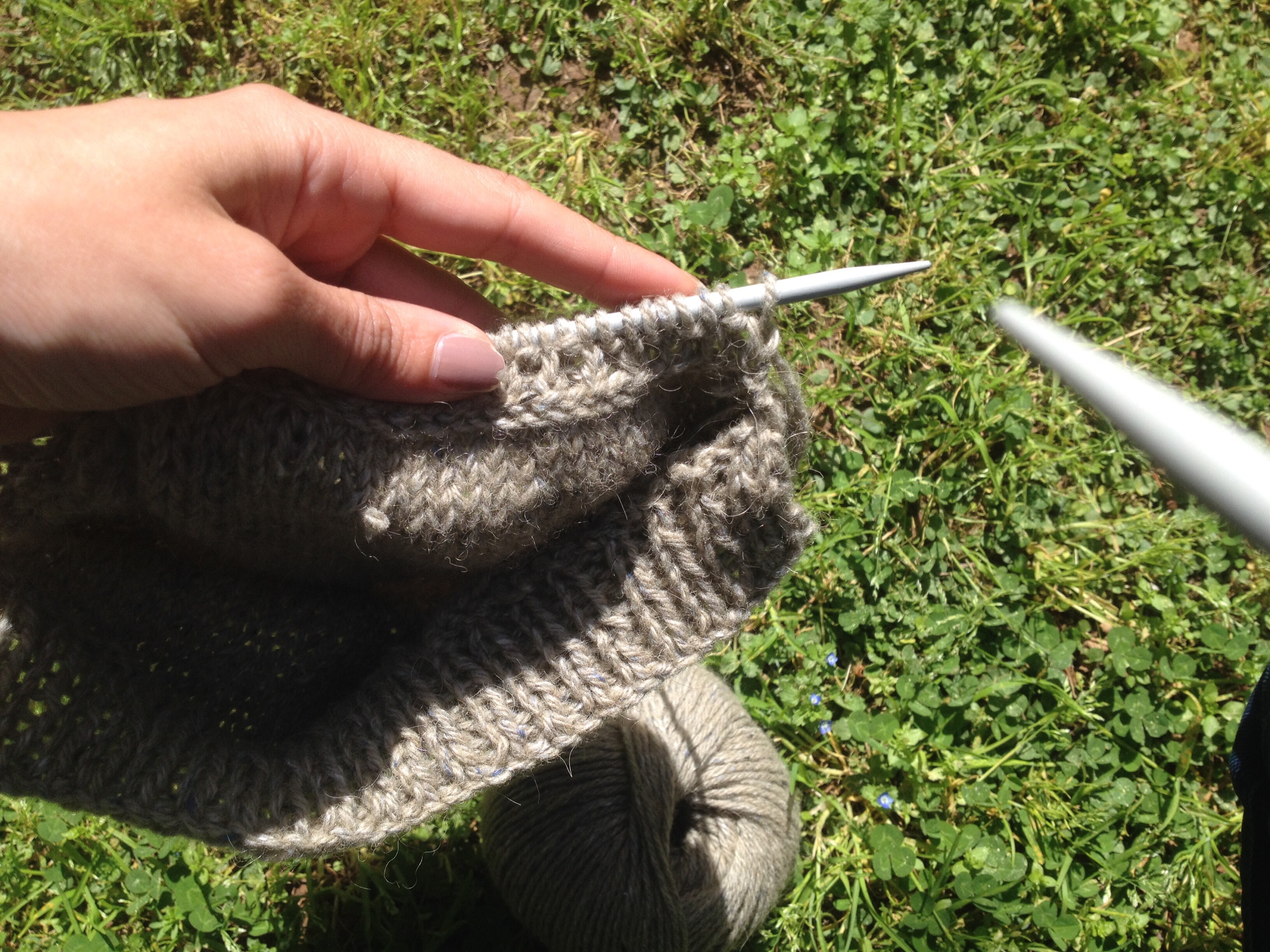 – Στη συνέχεια ρίχνετε και στις 2 άκρες της σειράς από 24 πόντους και συνεχίζετε με ζέρσεϊ καλή. Συνολικά πρέπει να έχετε 74 πόντους πάνω στη βελόνα σας.