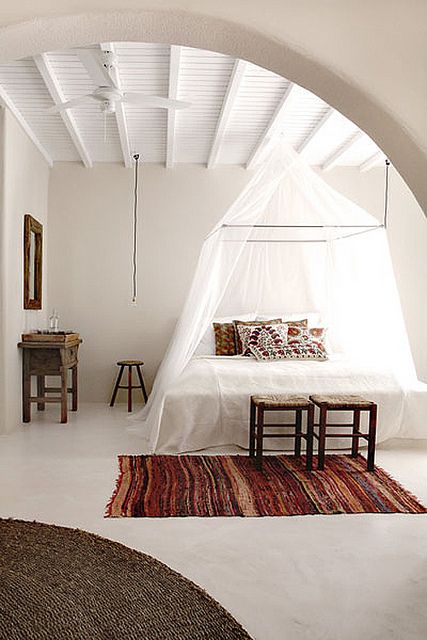 Μπορείτε να κρεμάσετε πλεκτά πετσετάκια στον τοίχο, σαν έργο τέχνης ή να στρώσετε πλεκτές κουβέρτες σαν υπόστρωμα, για να στολίσετε με τα κρόσσια τους το κρεβάτι. Συνδυάζονται άψογα με σκληρά υφάσματα σε εθνίκ μοτίβα και ακατέργαστα υλικά (όπως κλαδιά, μπαμπού και πέτρες) και είναι ιδανικά σε σπίτια εκτός αστικών περιοχών.