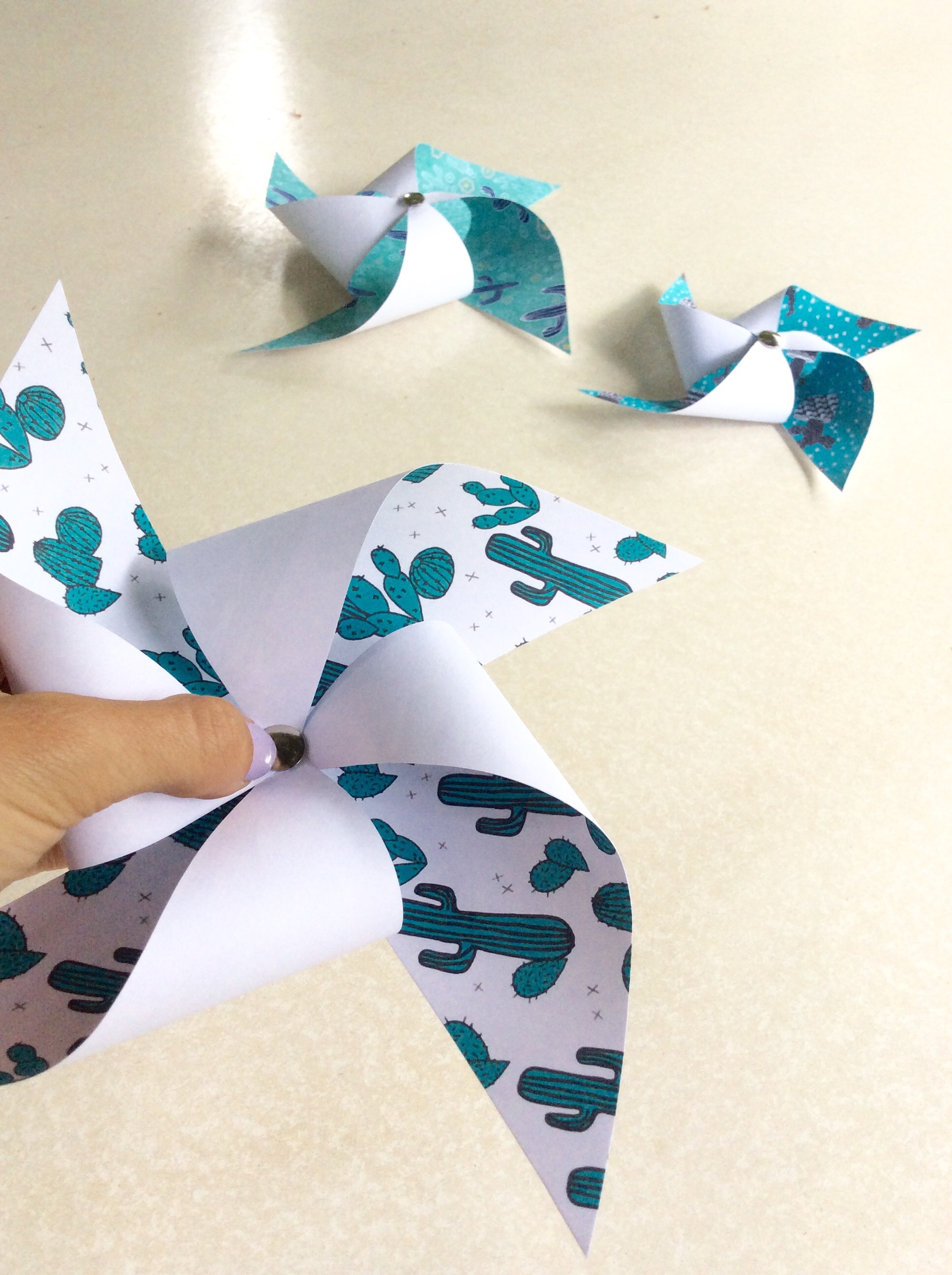 Οι ανεμόμυλοι πάντα δίνουν χαρά σε μικρούς και μεγάλους καθώς στροβιλίζονται με το πρώτο καλοκαιρινό αεράκι που θα φυσήξει στο μπαλκόνι μας! Για να κατασκευάσετε τους δικούς σας όμορφους ανεμόμυλους με σχέδια κάκτων δεν έχετε παρά να ακολουθήσετε τα παρακάτω βήματα:
