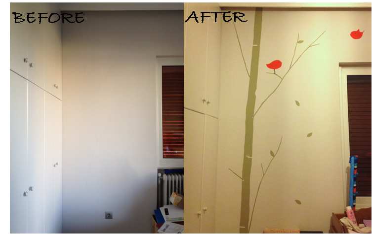-Προσπαθήστε να ζωγραφίσετε δέντρα και κλαδιά στον τοίχο, φύλλα, πουλάκια, ζωάκια ή ζητήστε τη βοήθειά μας!