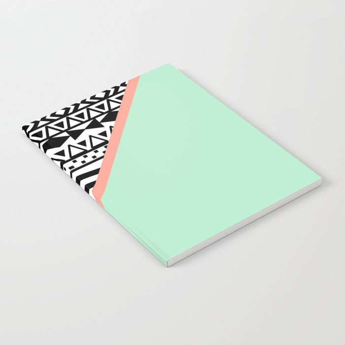 block–black-white-aztec-pattern-mint-green-color-block-notebooks