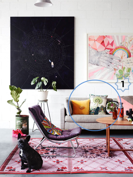 Ένα χαρούμενο καθιστικό υποδέχεται τους επισκέπτες, γεμάτο χρώματα και σχέδια τέλεια εναρμονισμένα. Επιλέξτε μαξιλάρια σε διάφορα μεγέθη, χρώματα και μοτίβα, αλλά στην ίδια φιλοσοφία και στιλ π.χ. boho, funky pop, γεωμετρικό κ.τ.λ. Συνδυάστε το με χαλάκια και πατάκια και έπιπλα σε απλές γραμμές και μονοχρωμία.