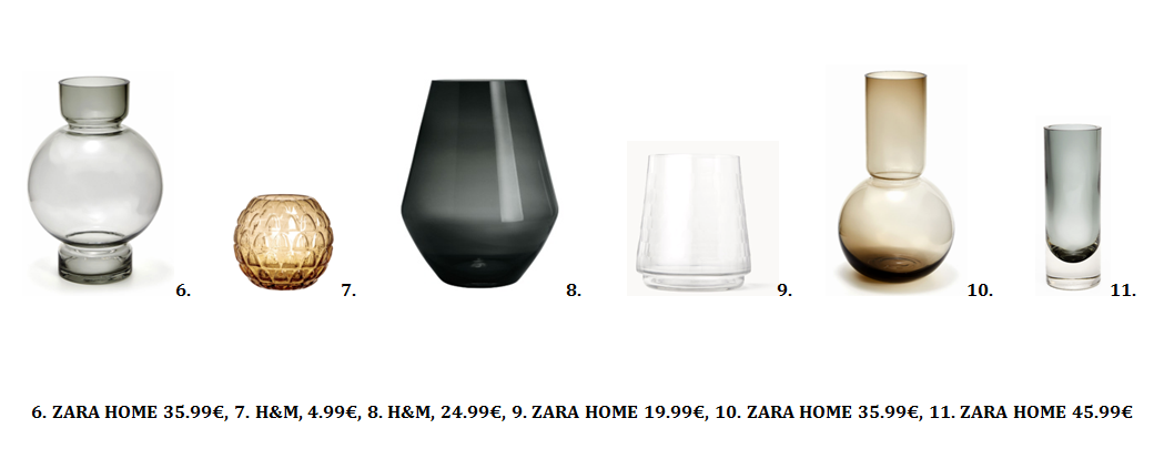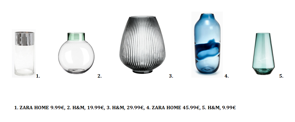 Μετά απο μια έρευνα αγοράς, δημιουργήσαμε για εσάς και σας προτείνουμε διαφορετικές συνθέσεις-συνδυασμούς βάζων απο δύο εταιρίες, τη ZARA HOME και H&M Home. Οι προτάσεις μας συνδυάζουν διαφορετικά υλικά, χρωματικούς συνδυασμούς, σχέδια και σχήματα! Βρείτε ποιό ταιριάζει περισσότερο σε εσάς και εμπνευστείτε φτιάχνοντας τη δική σας σύνθεση! Μα δεν είναι υπέροχα;