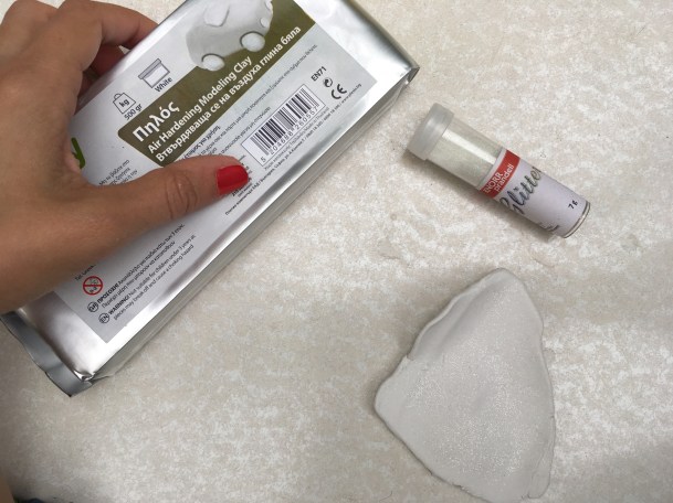 *Αν θέλετε μπορείτε να χρησιμοποιήσετε glitter που θα αναμείξετε μέσα στον πηλό πριν τον πλάσετε.