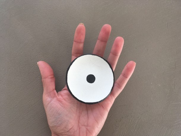 Και τώρα αρχίζει το βάψιμο! Αυτό το μικρό στρογγυλό δισκάκι δεν θα μπορούσε να γίνει κάτι άλλο απο ένα μάτι που αγαπάμε τόσο πολύ! Με ακρυλικό χρώμα και ένα μικρό πινελάκι κάνουμε σχέδια και δείτε τι προέκυψε…