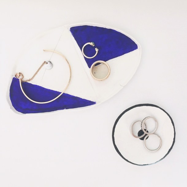 /Today is the right time to start a DIY project! Get inspired by our ideas on handmade items from clay. We love this material cause its easy to shape and it can be formed in many ways! We made two wonderful trays for jewelry with air-dry clay and some glitter and at the end we painted them with water colors. Try the following steps and make your own easy handmade trays to decorate your bedroom!