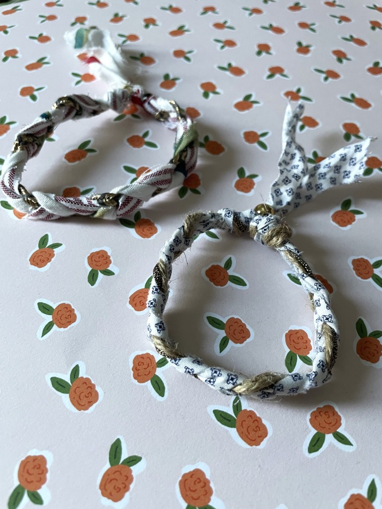 Αυτή τη φορά φτιάχνουμε βραχιόλια από υφάσματα που μπορείτε να βρείτε είτε στην αγορά, σε καλές τιμές ανά μέτρο στα μαγαζιά του κέντρου της Αθήνας, είτε στο σπίτι σας δηλαδή παλιά ρούχα που δεν χρειάζεστε πια και έχουν ένα ενδιαφέρον σχέδιο!