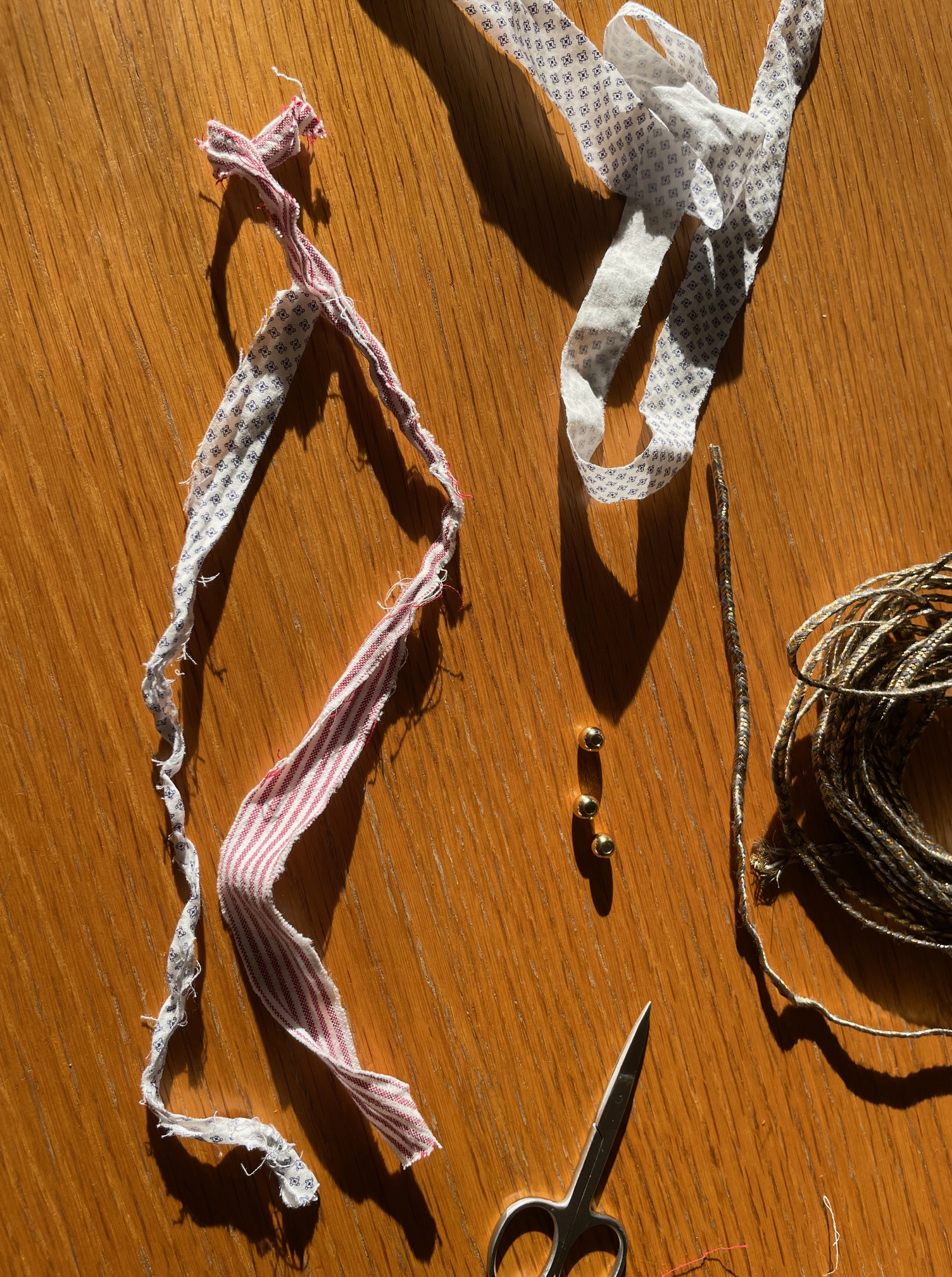 - υφάσματα κομμένα σε λωρίδες 40 εκ. μήκους και 2-2,5 εκ. πάχους.