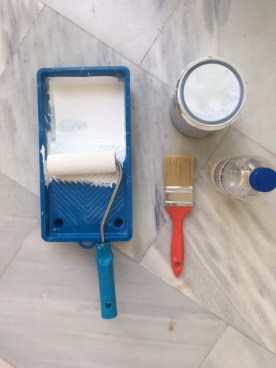 5. Βάφω με χρώμα για μέταλλο λαδιού χρησιμοποιώντας πινέλο και βουρτσάκι. Περνάω τουλάχιστον 2 στρώσεις χρώματος αφήνοντας χρόνο να στεγνώσουν καλά. Μην ξεχάσετε να στρώσετε στο πάτωμα χαρτόνια γιατί θα στάξει το χρώμα και το αντισκωριακό.