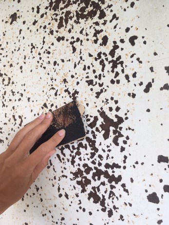 1. Τρίβω με χοντρό γυαλόχαρτο για την απομάκρυνση της σκουριάς και του χρώματος που έχει ξεφτύσει