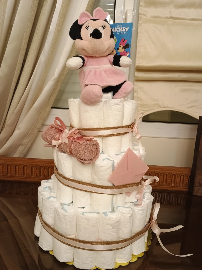 If you have a baby shower invitation in your hands or you are about to visit a newborn and don’t know what gift to bring, we have the perfect suggestion for you: a diaper cake! A multi-layered «cake» made of diapers, which you can enhance with other useful items like small towels, onesies, and more. A playful, impressive, and at the same time practical and useful gift!