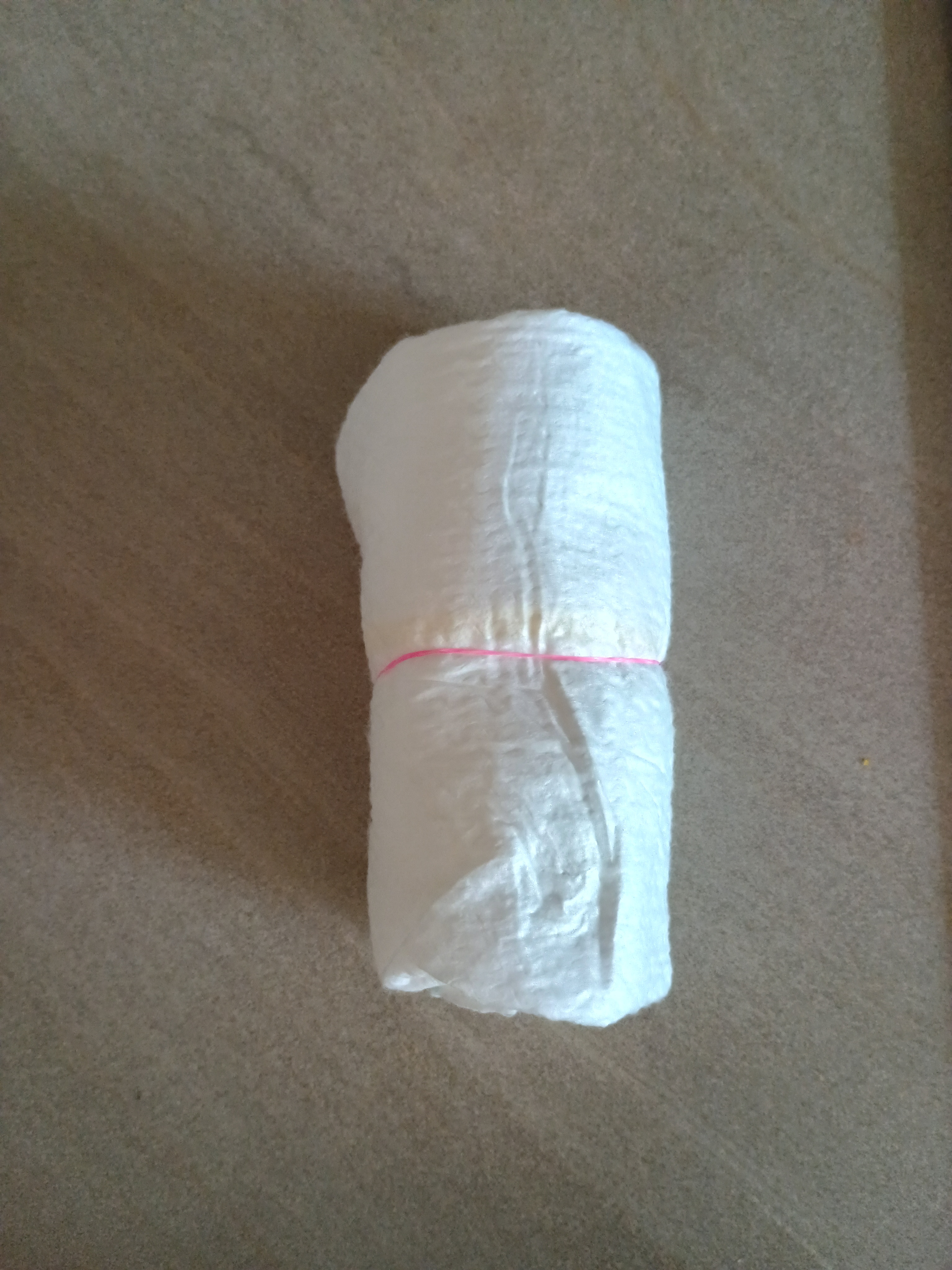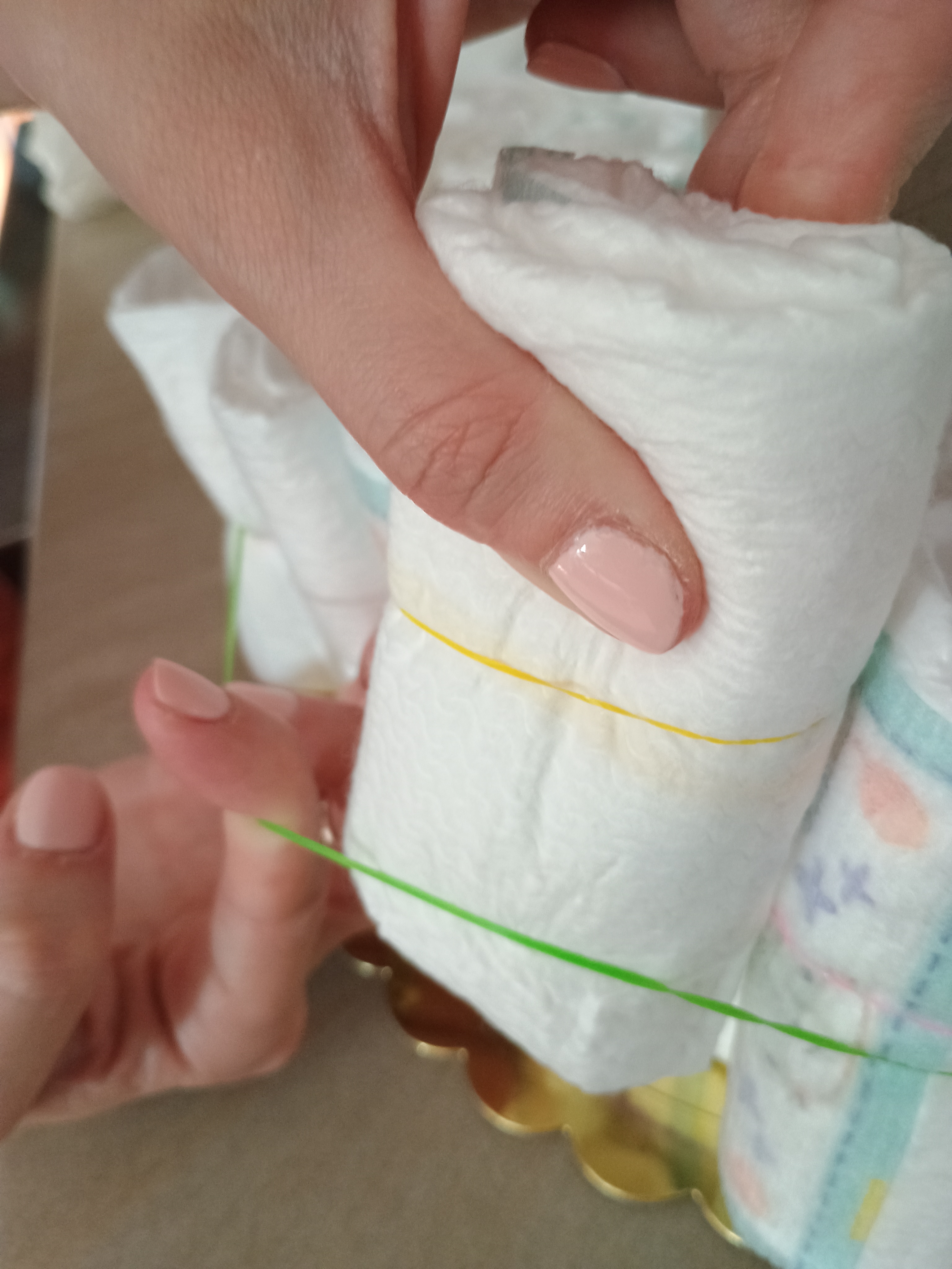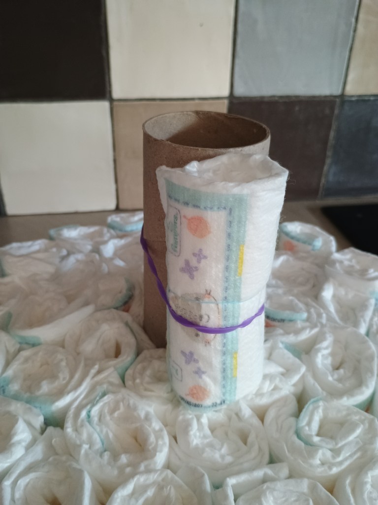 - Τυλίγεις τις πάνες σε ρολό και δένεις με μικρά λαστιχάκια.