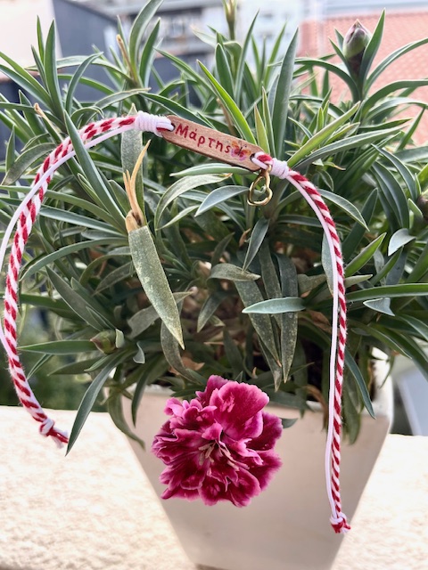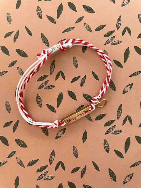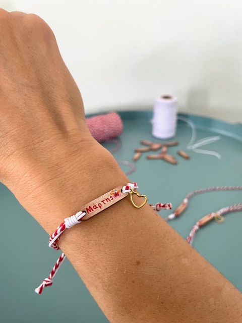 / The greek March bracelets is a traditional red-white bracelet that greek people wear in their wrists during March. It is believed that doing so will help prevent your skin from burning in the new springtime sun. The red string represents sun-kissed cheeks, and the white string, purity.