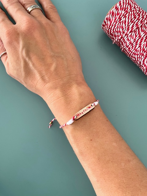 Αυτή τη χρονιά επιλέξαμε ξύλινα στοιχεία με τη λέξη ‘Μάρτης’, καρδούλες και φυσικά το κλασσικό άσπρο-κόκκινο νήμα. Δεν φτιάξαμε μόνο ένα σχέδιο, δοκιμάσαμε παραλλαγές με μπλε νήμα και διαφορετικά δεσίματα! Δείτε τα βραχιολάκια μας και κάντε τις επιλογές σας 🙂